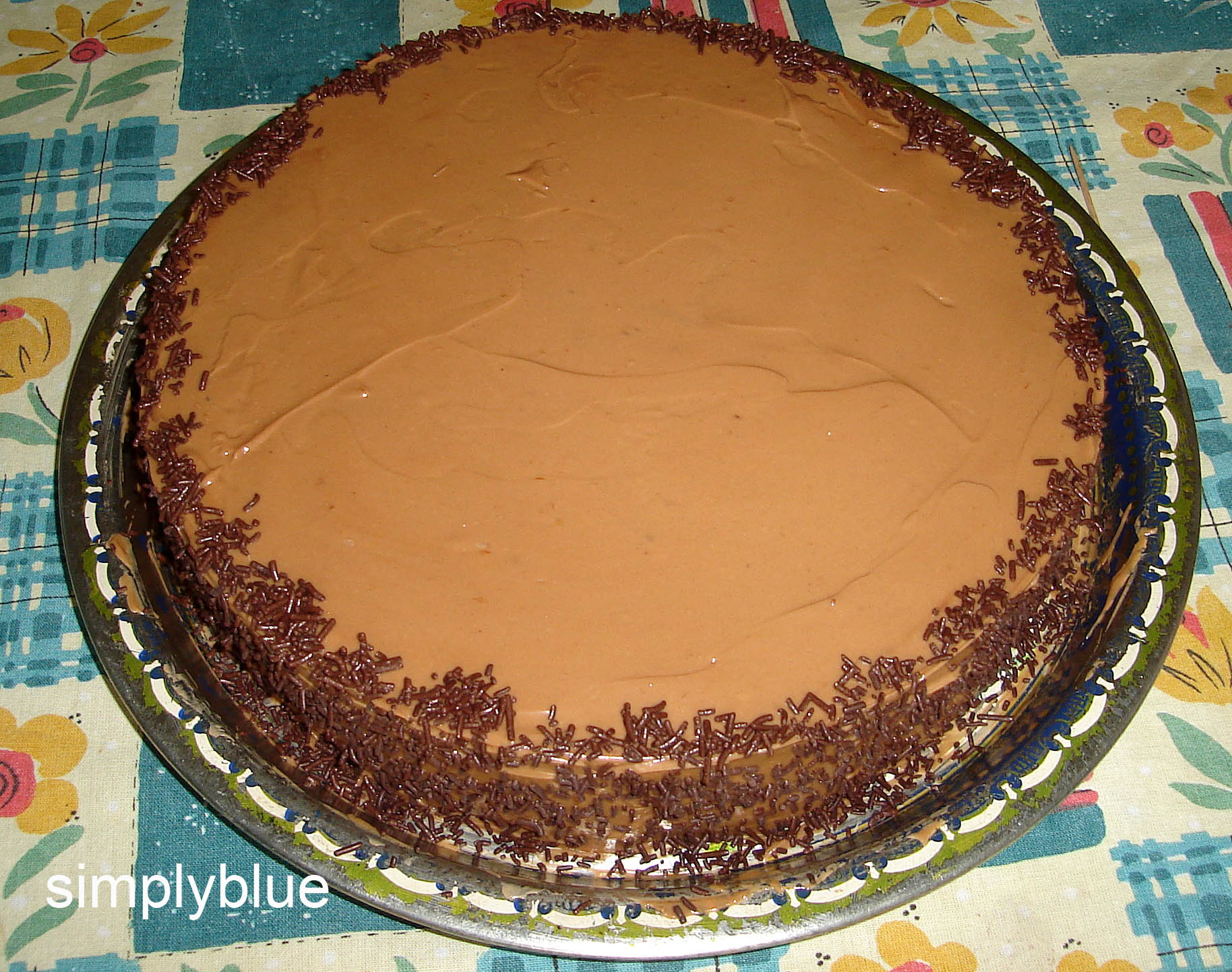 слепваме внимателно блатовете с крем, като намазване отгоре и отстрани цялата торта. украсата е по желание 🙂