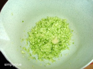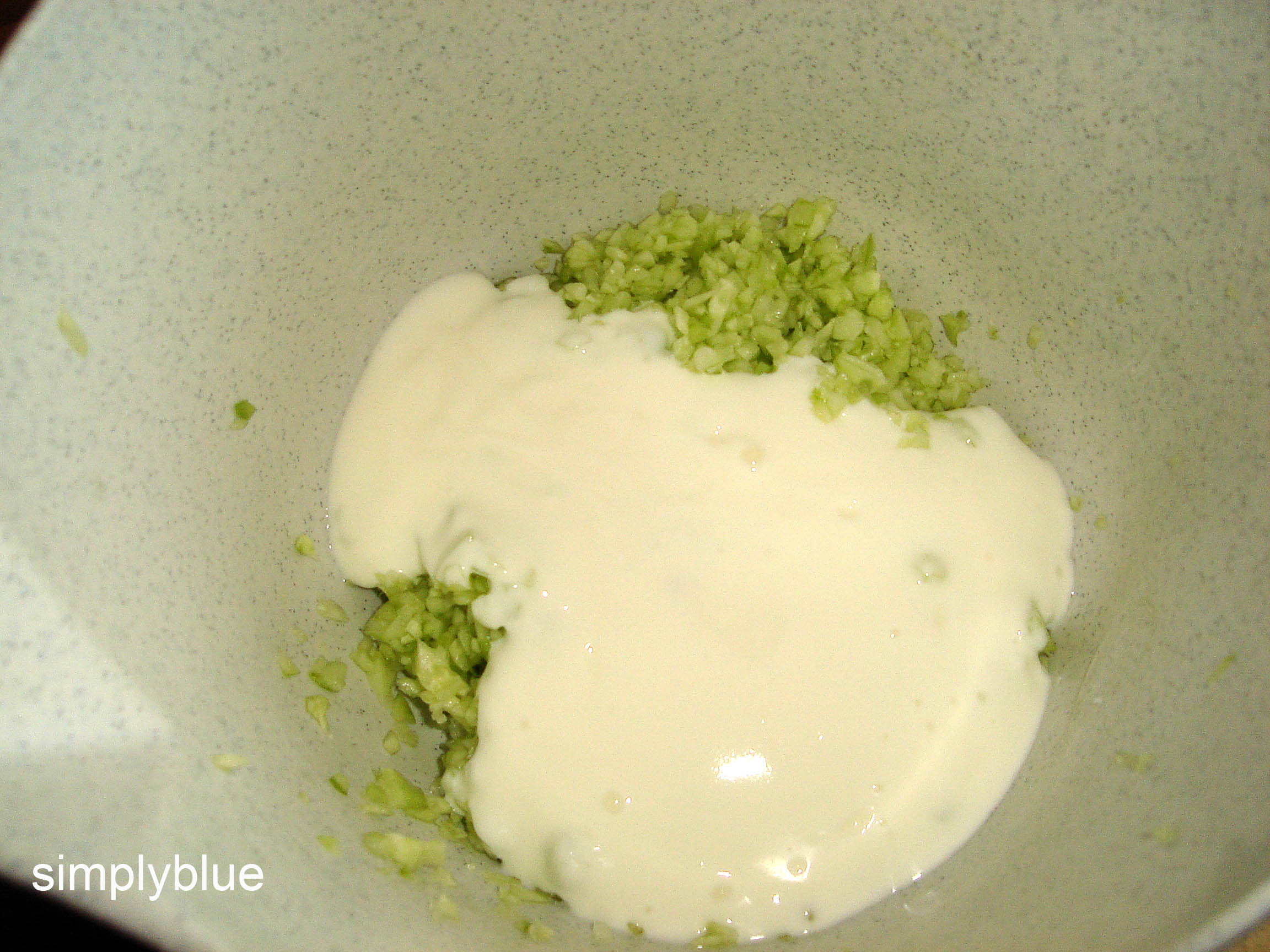 краставицата се нарязва на дребно (хич и не си помисляйте да използвате рендето), а чесъна се смила
