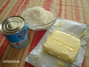 разбиват се яйцата със захарта на пяна, после постепенно се прибавят олиото и прясното мляко, какаото и кокосовите стърготини, а най-накрая – брашното, смесено с бакпулвера. сместа се изсипва в намазана с масло тава или форма. използвах разкопчаваща се тортена форма (25см диаметър), като на дъното сложих хартия за печене. намазах само страните с масло.