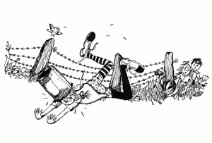 Тъкмо тогава портата на близката къща се отвори и от нея изхвръкна едно момче. Изглеждаше изплашено и това не беше чудно, защото по петите му го следваха други пет момчета. Те бързо го настигнаха, притиснаха го към оградата и се нахвърлиха вкупом върху него. Петимата започнаха едновременно да го блъскат и удрят. То се разплака и закри лицето си с ръце, за да се защити.