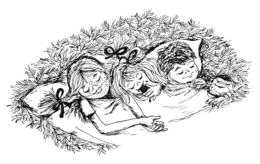 След малко трите деца и Господин Нилсон лежаха в палатката, увити в одеяло. Отвън вълните лекичко плискаха в брега.
