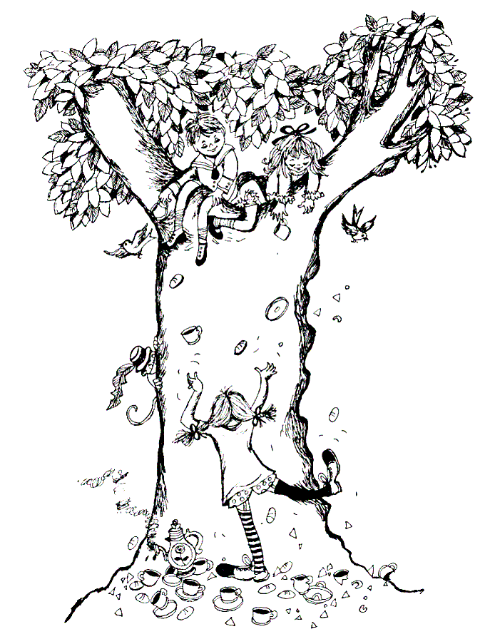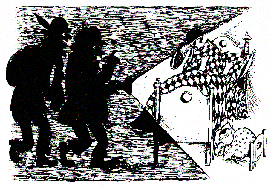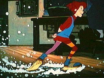 Когато Томи и Аника на другия ден се промъкнаха през задната врата във Вила Вилекула, цялата къща се огласяше от чудовищно хъркане. Капитан Дългия чорап още не беше се събудил, но Пипи беше в кухнята и правеше своята утринна гимнастика. Тя тъкмо правеше петнадесетото свободно премятане във въздуха, когато влязоха Томи и Аника и я прекъснаха.